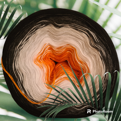 Dieser Bobbel namens Halloweenzauber ist ein wahrer Blickfang für alle Strick- und Häkelbegeisterten! Die Farbkomposition erinnert an einen mystischen Herbstabend oder ein flackerndes Kürbislicht in der Dunkelheit.